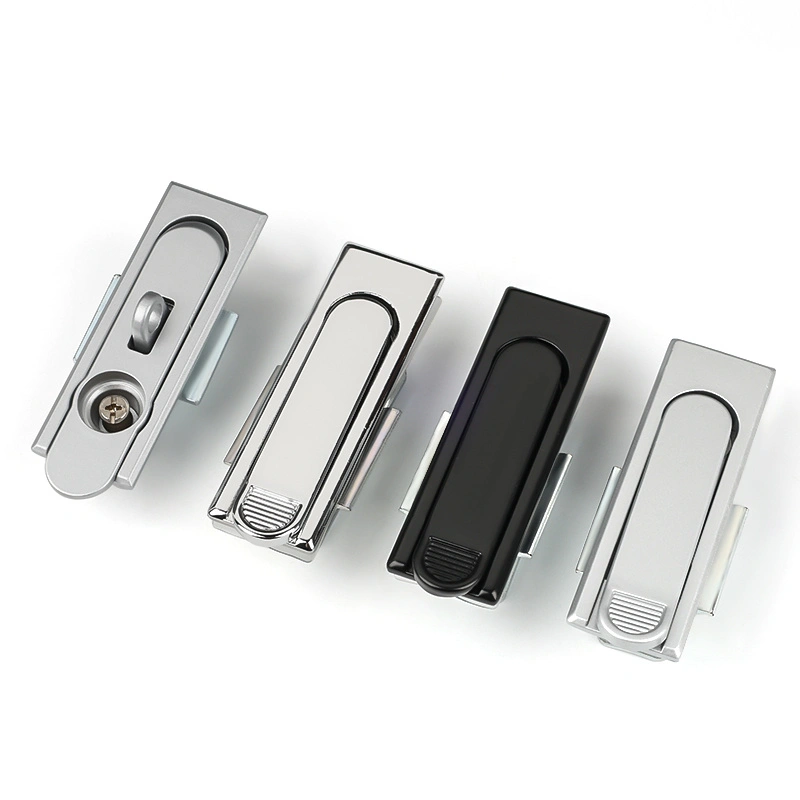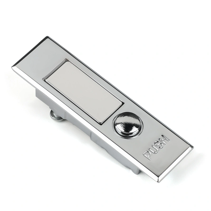 Funksjonen til kabinettdøren Flat Snap Lock er å muliggjøre rask og sikker åpning og lukking av skapdøren. Låsen er utstyrt med en knappbryter som er enkel å betjene og egnet for industrielle miljøer der hansker må bæres. Den indre fjæren lar låsetungen automatisk tilbakestille, så det kreves ingen ekstra drift når du lukker skapdøren.