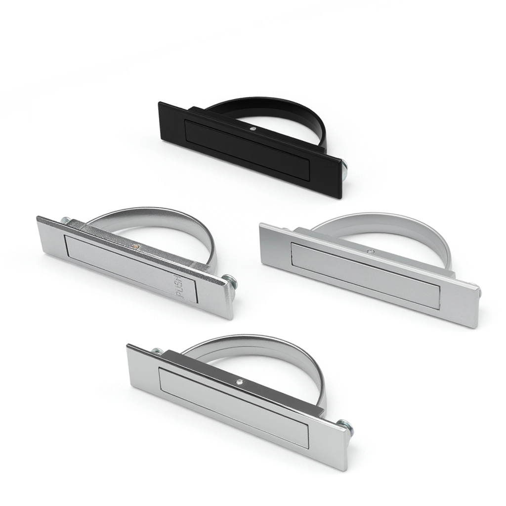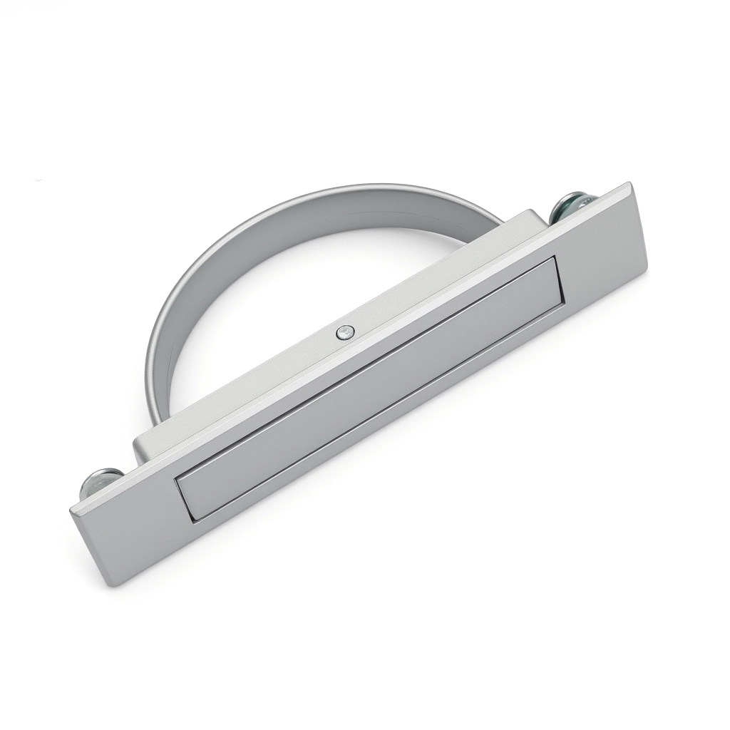 Det skjulte håndtaket er laget av sinklegering. Den er tilgjengelig i fire farger: svart, matt, sandblåst og polert krom. Disse overflatebehandlingene utvider produktets levetid og forhindrer falming eller peeling.